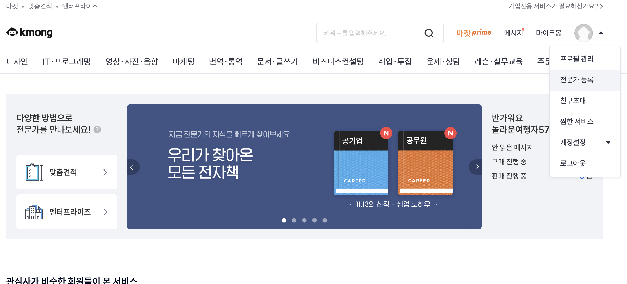간편하게 가입이 끝났다면 전문가 등록을 해보자.